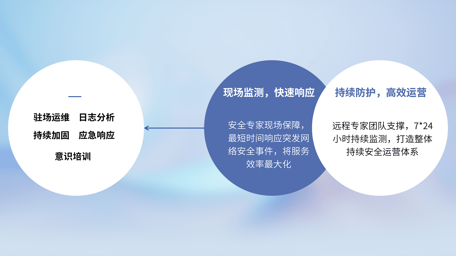 7X24小时持续监测安全事件,保持安全策略有效性,降低资产脆弱性风险,,精准拦截黑客攻击,,,,减少被黑客利用的机会,,第一时间遏制,,,,降低损失。。